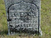 Note: CemSearch says 19 years old. Year looks more like 1869 than anything else - but very difficult to see.1,2,3 She was buried on 4 December 1869 at Albury Cemetery, Ameliasburgh Twp., Albury, Prince Edward Co., Ontario; CemSearch: Name: Eliza J. Mabee; Born: - ; Died: Dec 2 1889; Age: 19; ID: 106210; Cemetery: Alburty Cemetery, Ameliasburgh Twp., Old Sec row 3; No other names.