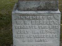 Note: Year??? 1847-1849??1,2 He was buried on 5 April 1849 at Eddystone Cemetery, Haldimand Twp., Northumberland Co., Ontario; Memorial: (See Exhibit) Wesley S; Died; Apr. 3, 1849; A. 27 Hrs; 11 Mos. 7 d's; Son of; W. & D. Bradley (Eddystone Cemetery, Haldimand Twp., June 9, 2007)