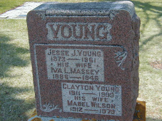 per Memorial.2,3 Jesse J. Young lived on 10 April 1933 at Warkworth, Northumberland Co., Ontario; Informant for Death Reg'n. of his mother Victooria Adelaide (Garbutt) Young.4 He died in 1961 at Ontario; Date 1961 per Memorial.2 He was buried in 1961 at Warkworth Cemetery, Warkworth, Northumberland Co., Ontario; Memorial: (See Exhibit) YOUNG; Jesse J. Young; 1873 - 1961; His Wife; Iva L. Massey; Clayton Young; 1911 - 1999; His Wife; Mabel Wilson; 1912 - 1979 (Warkworth Cemetery, Warkworth, Apr 28, 2007.)2