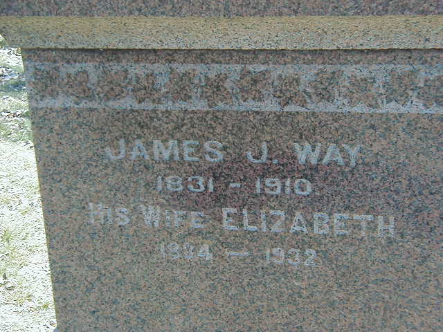 Date 1910 per Memorial. per GEDCOM of Doug Norman, June 18, 2007.1,3,4 He was buried on 29 September 1910 at Warkworth Cemetery, Warkworth, Northumberland Co., Ontario; Memorial: (See Exhibit) James J. Way; 1831 - 1910; His Wife Elizabeth; 1834 - 1932 (Warwkroth Cemetery, Warkworth, Apr. 28, 207.)3,2