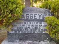 CEMSearch: Name: Garfield Lloyd Massey; Born: 1940-09-05; Died: 1945-10-06; Notes: Buried Oct 6 1945, so of Lloyd and Ruth Massey; Buried: Cobourg Union Cemetery, Cobourg, Sec A Row 7 Plot 13; Other names: Lloyd Marcus Massey (1911-1978), Ruth Embury Massey (Elsey) (1907-.1,2 ) He died on 6 October 1945 at Northumberland Co., Ontario, at age 5; Date Oct 6 1945 per Memorial & CEMSearch.1,2