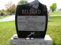 Dorothy Josephine Clark was born on 1 September 1933 at Warkworth, Northmberland Co., Ontario; Date Sep 1 1933 per Memorial. Date Sep 1 1933 & location Warkworth per email from Jim Belford, Nov 13 2017.1,2 As of circa 1960,her married name was Belford.1 She (an unknown value) in 2008 at White's Cemetery, Sidney Twp., Bayside, Hastings Co., Ontario.1 She died on 18 September 2017 at Belleville General Hospital, Belleville, Hastings Co., Ontario, at age 84; "Belford, Dorothy - Passed away peacefully at Belleville General Hospital on Monday, September 18, 2017 in her 85th year. Lovin gwife for 65 years t oJames "Jim" Belford. Cherished mother of Sandra (rob), Deborah, Terence and Joanne. Sadly missed by her grandchildren and great grandchildren. Survived by her sister Marguerite Ferguson (Denzil) and her brother Joseph Dillon. Predeceased by her parents William Clark and Alice Dillon and her brother Alan Clark. Dorothy will also be missed by her loving cat Bonnie. Memorial visitation will be held at the Weaver Family Funeral Home- West Chapel, 170 Dundas St., West, Trenton on Friday, September 22nd, 2017, from 1 -2 pm. A celebration of Dorothy's life will follow in the chapel at 2 pm. Interment White's Cemetery. As expressions of sympathy, donations to the Heart & Stroke Foundation would be appreciated by the family. Online guest book & dondolences at www.weaverfunderalhomes.com." clipping sent to me by Jim Belfor, Nov 13, 2017. http://www.weaverfuneralhomes.com/obituaries/Dorothy-Belford?obId=2568063#/obituaryInfo.3 She was buried on 21 September 2017 at White's Cemetery, Trenton, Hastings Co., Ontario; Memorial: (See Exhibit) BELFORD; James Henry; Oct 2, 1929 - ; His Wife; Dorothy Josephine Clark; Sept. 1, 1933 - Sept. 18, 2017; Parents of; Sandra, Terence; Devorah & Joanne (White's Cemetery, Bayside.)1