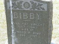 Anna May Vincent was born in 1867; Date 1867 per Memorial.1 As of circa 1905,her married name was Bibby.1 She married Edward Maurice Bibby, son of Edwin Bibby and Jane Morris, circa 1905; per memorial.1 Anna May Vincent was buried in 1943 at Mount Hope Cemetery, Brighton, Northumberland Co., Ontario; Memorial: (See Exhibit) BIBBY; Anna May Vincent; 1867 - 1943; Wife of; Edward M. Bibby; 1869 - 1945 (Mount Hope Cemetery, Brighton, June 30 2008.)1 She died in 1943 at Ontario; Date 1943 per Memorial.1