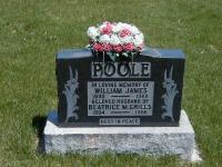 Beatrice May Grills was born on 5 May 1904 at Seymour Twp., Northumberland Co., Ontario; Date 1904 per Memorial. Date May 5 1904 per CemSearch. Date 1904 & location Seymour Twp. per marr. reg'n.1,2,3 As of 29 October 1924,her married name was Poole.1 She married William James Poole, son of William George Poole and Martha Elizabeth Greenley, on 29 October 1924 at Hastings, Northumberland Co., Ontario; Marriage Reg'n.#015499: Groom: William James Poole; Age: 23; Res.: & Born: Percy Twp; Status: bachelor; Occ.: farmer; Rel.: Meth; Parents: George William Poole & Mattie Greenly; Bride: Beatrice May Grills; Age: 20; Res.: Percy Twp; Born: Seymour Twp; Status: spinster; Rel.: Meth; Parents: William H. Grills & Ethel Eva Stephens; Expected Res.: Hastings; Wit.: Mrs. J. H. Grills & Mrs. M. L. Hinton, Hastings; Date: Oct 29 1924; Place: Hastings; Performed by: Milton Lionel Hinton, Methodist, Hastings; Sworn: Hastings, Oct 28 1924; Reg'r.: A. Wilson (Ontario Marriage Registration, #015499-1924, ancestry.com) "William (Beatricec Grills) and Harold of Warkworth" per Note in CemSearch record for Charles Calvin Poole.4,2 Beatrice May Grills died on 2 February 1986 at Campbellford General Hospital, Campbellford, Northumberland Co., Ontario, at age 81; Date 1986 per Memorial. Date Feb 2 1986 & location Campbellford General Hospital per CemSearch.2,3 She was buried on 5 February 1986 at Warkworth Cemetery, Warkworth, Northumberland Co., Ontario; Memorial: (See Exhibit) POOLE; In Loving Memory of; William James; 1900 - 1988; Beloved Husband of; Beatrice M. Grills; 1904 - 1986 (Warkworth Cemetery, Warkworth, June 17, 2007)