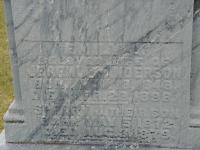Joshua Anderson was born on 23 July 1836 at Murray Twp., Northumberland Co., Ontario; Date 1836 per Memorial. Date Jul 23 1836 & location Murray Twp. per Death Reg'n. Date 1836 & location Ont. per 1881 Census. Date 1837 & location Ont. per 1871 Census. Date 1835 & location Cda. per 1851 Census. Date 1838 & location Murray Twp. per marriage reg'n. - Mary Maunda Simmons. Date 1836 per GEDCOM of Robert Graham, June 29, 2009.1,2,3,4,5,6,7 He appeared on the census of 1852 at Murray Twp., Northumberland Co., Ontario; Age 16 at 1851 Census: see Sebastian Anderson.2 He lived on 9 November 1870 at Sidney Twp., Hastings Co., Ontario; Residence Sidney Twp. per marriage reg'n. - Mary Maunda Simmons.6 He married Mary Maunda Simmons, daughter of George Simmons and Catherine ?, on 9 November 1870 at Sidney Twp., Hastings Co., Ontario; Marriage Reg'n.: Groom: Joshua Anderson; Age: 32; Res.: Sidney; Born: Murray; Status: bachelor; Occ.: yeoman; Parents: Sebatian & Juliana Anderson; Bride: Mary Maunda Simmons; Age: 22; Res.: Sidney; Born: Cda. East; Parents: George & Catherine Simmons; Wit.: Charles & Laura Anderson; Date: Nov 9 1870; Place: Sidney Twp; Rel.: WM; Performed by: Samuel C. Phelps, Sidney Twp. (Ontario Marriage Registration, ancestry.ca) Date Nov 9 1870 per GEDCOM of Robert Graham, June 29, 2009.1,6 Joshua Anderson appeared on the census of April 1871 at Marysburgh Twp., Prince Edward Co., Ontario; Age 34 at 1871 Census: Anderson, Joshua, 34, b. Ont., Scot., WM, farmer, married; Mary, 22, b. Ont., Ger., WM, married; Sebastian, 61, b. Ont., Scot., WM, farmer, married; Juliana, 54, b. Ont., Ger., WM, married; Laura, 24, b. Ont., Scot., WM, single; Hannah, 20; Mellville, 13 (1871 Census: Marysburgh Twp., Prince Edward Co., dist. 60, sub-dist. a-1, pg. 36, line 17 - ancestry.ca.)7 He appeared on the census of April 1881 at Sydney Twp., Hastings West Co., Ontario; Age 45 at 1881 Census: Anderson, Joshua, 45, b. Ont., Scot., CM, farmer, married; Mary A., 33, b. Ont., Dutch, CM, married; Sebatian, 72, b. Ont., Scot., CM, farmer, married; Juliana, 66, b. Ont., Dutch, CM, married; Mellville, 23, b. Ont., Scot., CM, farmer, married; Mary E., 21, b. Ont., Dutch, CM, married (1881 Census: Sydney Twp., Hastings West Co., dist. 121, sub-dist. a-3, pg. 52, line 25 - ancestry.ca.)5 He appeared on the census of April 1891 at Sydney Twp., Hastings West Co., Ontario; Age 54 at 1891 Census: Anderson, Joshua, 54, b. Ont., p.b. Ont., Meth., farmer, single; Julalia, 75, b. Ont., p.b. US, Meth., widow; Mary Ann, 43, b. Ont., p.b. Ont., Meth., widwo (1891 Census: Sydney Twp., Hastings West Co., dist. 75, sub-dist. C, pg. 41, line 5 - ancestry.ca.)8 He lived on 25 August 1900 at Sidney Twp., Hastings Co., Ontario; Informant for Death Reg'n. of his mother Juliana (Pickle) Anderson.4 He died on 16 May 1921 at Sidney Twp., Hastings Co., Ontario, at age 84; Death Reg'n.#016002: Name: Joshua Anderson; Date: May 16 1921; Age: 84y 9m 23d; Res.: Sidney Twp., 65 yrs.' Born: Murray Twp., Jul 23 1836; Status: widower; Occ.: retired farmer; Parents: Sebatian Anderson, b. Murray Twp. & Juliana Pickle, b. Lennox Co; Inf.: P. M. Anderson, Frankford, RFD, nephew; Burial: Stockdale, May 18 1921; Und.: F. A. Windover, Frankford; Cause: chronic nephrtitis & catarshel bronchitis, 1 yr 5 mo; Phys.: J. N. Simmons, Frankford; Reg'd.: May 17 1921; Reg'r.: W. H. Nobes, Belleville (Ontario Death Registration, #016002-1921, ancestry.ca) Date 1921 per Memorial. Date 1921 per GEDCOM of Robert Graham, June 29, 2009.1,3,9 He was buried on 18 May 1921 at Stockdale Cemetery, Stockdale, Northumberland Co., Ontario; Memorial: (See Exhibit) Sebastian Anderson; 1809 - 1886; Julana Pickle, His Wife; 1815 - 1900; ANDERSON; Joshua Anderson; 1836 - 1921; Mary M. Simmons, His Wife; 1849 - 1921 (Stockdale Cemetery, Stockdale, May 26 2006) Date May 18 1921 per Death Reg'n.3,4