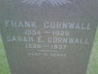 CemSearch: Name: Frank Cornwall; Born: May 29 1854; Died: Mar 13 1929; ID: SALEM0340; Other names: Cornwall, Sarah Ellen [Snelgrove] (1859-1937); Cemetery: Salem Cemetery, Conc 1, Lot 21, Cramahe Twp., Vilalge of Salem, Northumberland Co., SEc 2 Row 27 Plot 3; Note: Husband of Sarah Ellen Snelgrove. Father of Maggie & Mrs Frank Ventress. Son of John Cornwall of England & Polly Campbell of ON. Born Presqu'ile Point, died Cramahe Township. Died of angina pectoris. Informant Maggie Smith, daughter, Brockville. Info Cramahe Death Registers. (https://www.cemsearch.ca/burial/?pid=SALEM0340%5E0)