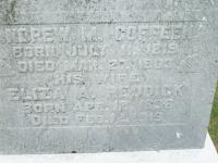 Andrew Murray Coffeen was born on 11 July 1819 at Cramahe Twp., Northumberland Co., Upper Canada; Date Jul 11 1819 per Memorial & CemSearch. Date 1818 & location Cda. per Death Reg'n. Date 1820 & location Ont. per 1881 Census. Date 1820 & location Ont. per 1871 Census. Date 1819 & location CW per 1861 Census. Date 1819 & location Cda. per 1851 Census. Location Cramahe Twp. per Death Reg'n. of dau. Martha Coffeen. per GEDCOM of Cheryl Kemp Taber, Mar 29 2011.1,5,4,2,7,8,9,6 He married Sarah Jane Smith circa 1840 at Northumberland Co., Upper Canada; per family tree of woodeneye3 on ancestry.ca, Apr 19 2020.2,3 Andrew Murray Coffeen appeared on the census of 1852 at Cramahe Twp., Northumberland Co., Canada West; Age 32 at 1851 Census: Coffin, Andrew, 32, b. Cda., WM, Carpenter, married; Sarah J., 31, b. Cda., WM, married; Martha, A.?, 9, b. Cda., WM; Elizabeth, 8; John, 6; Francis B.(m), 3; Mary A., 58, b. Cda., WM, widow (1851 Census: Cramahe Twp., Northumberland Co., pg. 51 of 131, line 37, ancestry.ca.)2 He Andrew Coffeen's first wife, Sarah Jane Smith, died late 1852 or earch 1853. circa November 1852 at Cramahe Twp., Northumberland Co., Canada West. He married Sarah Ann Reddick, daughter of David Reddick Sr. and Catherine Frederick, on 17 February 1853 at Cramahe Twp., Northumberland Co., Canada West; Marriage Register: Groom: Andrew McCoffin; Bride: Sarah Ann Reddick; Date: Feb 17 1853; Wit.: Andrew ?Seymore? & David Reddick; Performed by: James Hughes, Wesleyan Methodist Minister (Ontario Marriage Registers, Newcastle Dist., 1853, pg. 3 of 4, ancestry.ca.)10 Andrew Murray Coffeen Andrew Cofdeen's second wife, Sarah Ann Reddick, died c. 1857. circa 1857 at Cramahe Twp., Northumberland Co., Canada West.10 He married Elizabeth Ann Reddick, daughter of John Reddick and Clarissa "Clara" Wannamaker, on 27 May 1858 at Cramahe Twp., Northumberland Co., Canada West; per GEDCOM of Cheryl Kemp Taber, Mar 29 2011.1 Andrew Murray Coffeen appeared on the census of April 1861 at Cramahe Twp., Northumberland Co., Canada West; Age 42 at 1861 Census: Coffeen, Andrew, 42, b. CW, WM, Carpenter, married; Eliza, 25, b. CW, WM, married; Martha, 19, b. CW, WM, single; Matilda, 18; John, 16; Frances(f), 12; Emma, 3; James, 1; Mary Ann, 69, b. CW, WM, single; Peters, Mary, 52, b. CW, WM, single (1861 Census: Cramahe Twp., Northumberland Co., pg. 570 of 899, line 26, ancestry.ca.)8 He appeared on the census of April 1871 at Cramahe Twp., East Northumberland Co., Ontario; Age 51 at 1871 Census: Coffin, Andrew, 51, b. Ont., Eng., WM, Carpenter, married; Elizabeth, 35, b. Ont., Ger., WM, married; Emma J., 13, b. Ont., Eng., WM; James S., 11; George A., 8; Alice, 5; William, 3; Amelia, 2/12 -Jan; Francis(m), 22, b. Ont., Eng., WM, single; Matilda, 27, b. Ont., Eng., WM, single (1871 Census: Cramahe Twp., East Northumberland Co., dist. 55, sub-dist. a-1, pg. 52, line 16 - ancestry.ca.)9 He appeared on the census of April 1881 at Cramahe Twp., East Northumberland Co., Ontario; Age 61 at 1881 Census: Coffeen, Andrew, 61, b. Ont., Irish, Meth., Carpenter, married; Eliza Ann, 45, b. Ont., Ger., Meth., married; Matilda, 37, b. Ont., Irish, Meth., single; James S., 20, b. Ont., Irish, Meth., farmer, single; George A., 17; Alice M., 15; Frederick S., 7; Albert A., 5; Jessie E., 3; Peters, Mary E., 73, b. Ont., Eng., CM, single (1881 Census: Cramahe Twp., East Northumberland Co., dist. 123, sub-dist. a, pg. 36, line 9 - ancestry.ca.)6 He died on 27 March 1903 at Cramahe Twp., Salem, Northumberland Co., Ontario, at age 83; Death Reg'n.#019253: Name: Andrew M. Coffeen; Date: Mar 27 1903; Age 84; Res.: Salem; Occ.: Carpenter; Status: married; Born: Cda; Cause: cerebral apoplexy; Phys. & Inf.: T. B. Henson; Rel.: Meth; Reg'd.: Mar 27 1903 (Ontario Death Registration, #019253-1903, ancestry.ca) Date Mar 27 1903 per Memorial & CemSearch.5,4,11 He was buried on 29 March 1903 at Salem Cemetery, Cramahe Twp., Salem, Northumberland Co., Ontario; Memorial: (See Exhibit) Andrew M. Coffeen; Born July 11, 1819; Died Mar. 27, 1903; His Wife; Eliza A. Reddick; Born Apr. 12, 1836; Died FFeb. 12, 1919 (Salem Cemetery, Conc 1 Lot 21, Cramahe Twp., July 6 2009, by Dan)