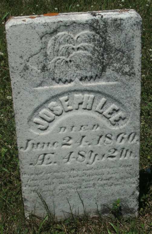 FindaGrave: Name: Joseph Lee; BIRTH: 1812; DEATH: 21 Jun 1860 (aged 47–48); BURIAL: Carrying Place Cemetery, Carrying Place, Northumberland Co., Ontario, Canada; MEMORIAL ID: 182366524 (https://www.findagrave.com/memorial/182366524/joseph-lee?_gl=1*x71xwl*_ga*MTM2OTMxODYxNS4xNjM1ODgwODE4*_ga_4QT8FMEX30*MTY1MTQ1MjU1MS4xMS4xLjE2NTE0NTM3ODMuMA..)3
