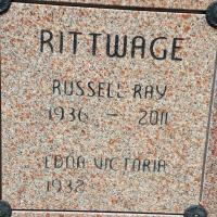 Date 2011 per Memorial.1,2 He was buried on 13 May 2011 at Mount Hope Cemetery, Brighton, Northumberland Co., Ontario; Memorial: (see Exhibit) RITTWAGE; Russell Ray; 1936 - 2011; Edna Victoria; 1932 - (Mount Hope Cemetery, Brighton, image by Dan Buchanan, Jun 28 2025.)2