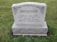 Archie Basil Donaldson was born on 7 October 1902 at Renfrew Co., Ontario; Birth Reg'n.#.. : Name: Bazel Archie Donaldson; Date: Oct 7 1902?; Parents: Daniel A. Donaldson? & Lucy Livingston?... pg. 2 n/a ... (Ontario Birth Registration, #... , ancestry.com) Record is badly written and typically, pg 2 not there ....) Date 1903 & location Ont. per 1921 Census. Date Oct 1902 & location Ont. per 1911 Census. Date Oct 7 1903 per GEDCOM of Troy Brown, July 9 2011. per Death Notice of daughter Marlene Yvonne (Donaldson) Herrington.1,2,4,5,3 He appeared on the census of 13 June 1911 at Sherwood & Jones Twp.'s, Renfrew South Co., Ontario; Age 8 at 1911 Census: see Daniel Donaldson.3 He appeared on the census of 1921 at Sherwood Twp., Renfrew South Co., Ontario; Age 18 at 1921 Census: see Daniel Donaldson.5 He married Kathleen Cora Viola Schriver, daughter of John Cylus Schriver and Mary Eliza Stimers, on 8 June 1932 at Ontario; Date Jun 8 1932 per Memorial. per Death Notice of daughter Marlene Yvonne (Donaldson) Herrington.1,6 Archie Basil Donaldson died on 15 December 1973 at Trenton, Hastings Co., Ontario, at age 71; Date Dec 15 1973 per Memorial. Date Dec 15 1973 & location Trenton per family tree of brianoliver160 on ancestry.com, Jun 9 2015. Date Dec 15 1973 per GEDCOM of Troy Brown, July 9 2011.2,6,7 He was buried on 18 December 1973 at Hilton Cemetery, Hilton, Northumberland Co., Ontario; Memorial: (See Exhibit) DONALDSON; Archie B. Donaldson; October 7, 1902 - December 15, 1973; His Beloved Wife; Kathleen Cora Schriver; June 28, 1912 - September 19, 2008; Married June 8, 1932 (Hilton Cemetery, Brighton Twp., image from www.findagrave added by K. 8/10./2012.)6
