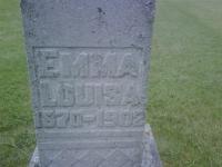 Emily Louisa "Emma" Kelly was born on 12 November 1870 at Percy Twp., Northumberland Co., Ontario; Birth Reg'n.#024421: Name: Louisa Kelly; Date: Nov 12 1870; Parents: John Kelly & Margaret Raney; Inf.: John Kelly, farmer, Percy; Reg'd.: Feb 1 1871; Phys.: Mrs. Anderson; Reg'r.: R. P. Hurlbut, Percy (Ontario Birth Registration, #024421-1871, ancestry.com) Date 1870 & location Percy per Death Reg'n. Date Nov 12 1873 & location Ont. urban per 1901 Census. Date 1873 & location Ont. per 1891 Census. Date 1871 & location Ont. per 1881 Census. Date Nov 1870 & location Ont. per 1871 Census.1,2,4,5,6,7 She appeared on the census of April 1871 at Percy Twp., Northumberland Co., Ontario; Age 5 months at 1871 Census: see John Kelly.1 She appeared on the census of April 1881 at Percy Twp., Northumberland Co., Ontario; Age 10 at 1881 Census: see John Kelly.2 She appeared on the census of April 1891 at St. Patrick's Ward, Toronto, York Co., Ontario; Age 18 at 1891 Census: see John Kelly (brother.)6 She appeared on the census of April 1901 at Toronto West, Toronto, York Co., Ontario; Age 28 at 1901 Census: see John D. Kelly (brother.)5 She died on 27 February 1902 at Conc 6 Lot 5, Percy Twp., Northumberland Co., Ontario, at age 31; Death Reg'n.#010405: Name: Emma L. Kelly; Date: Feb 27 1902; Age: 31; Res.: Conc 6, East Half Lot 5, Percy Twp; Status: single; Born: Percy Twp; Cause: consu,ption; Phys.: C. C. Armstrong; Rel.: Meth., Inf.: S. Osborne; Reg'd.: Mar 3 1902; Reg'r.: R. P. Hurlbut (Ontario Death Registration, #010405-1902, ancestry.com) Date 1902 per Memorial.8,9 She was buried on 2 March 1902 at Warkworth Cemetery, Warkworth, Northumberland Co., Ontario; Memorial: (See Exhibit) Emma; Louisa; 1870 - 1902 (Warkworth Cemetery, Warkworth, Jul 7 2009) Per Death Reg'n.8,7