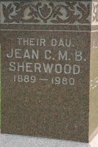 CemSearch: Name: Jean C. M. B. Sherwood; Maiden: Thorne; Born: 1889; Died: 198o; ID: MTHOPE389; Other names: Macklam, Aleck Thorne (1919- ), Macklam, Florence Gertrude [McCourt](1923-1985), Thorne, Albert E. (1860-1898), Thorne, Esther [Smith](1833-1919), Thorne, Jennie E. [Jackson](1861-1917); Cemetery: Mount Hope Cemetery, Brighton, Sec 1 Row 20 (https://www.cemsearch.ca/burial/?pid=MTHOPE389%5E3.)4,5