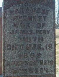 CemSearch: Name: James Perry Smith; Born: - ; Died: May 19 1896; Age: 60y 10m 19d; ID: MTHOPE267; Other names: Smith, Mary Jane [Bennett] ( -1898); Cemetery: Mount Hope Cemetery, Conc A Lot 35, Brighton Twp., Brighton Village, Northumbedrland Co., Sec 1 Row 13; Note: Husband of Mary Jane Bennett (https://www.cemsearch.ca/burial/?pid=MTHOPE267%5E0.)2,11