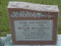 John Whitehouse was born in April 1880 at Birmingham, England; Date 1880 per Memorial. Date 1880 & location England per 1921 Census. Date Apr 1881 & location England per 1911 Census. per Birth Reg'n. of daughter Maude Whitehouse. Location Birmingham, England per Marriage Registration of his son, John Thomas R. Whitehouse.1,3,4,5,6 He married Leah Messenger on 29 January 1900 at Birmingham, England; Date Jan 29 1900 & location Birmingham, England per Birth Reg'n. of son Samuel Whitehouse. Date Jan 29 1900 & location Beriningham, England per Birth Reg'n. of daughter Charlotte Whitehouse. per Birth Reg'n. of daughter Maude Whitehouse.1 John Whitehouse immigrated in 1903 to Ontario; Immigration 1903 - per 1911 Census.3 He lived on 20 November 1906 at Conc 1 Lot 30, Brighton Twp., Northumberland Co., Ontario; Land Registry Records (Grant 7949) show that Edward H. Bate & wife sold "100 acres in the south half", Lot 30, Concession 1, Brighton Twp., Northumberland Co. to John Whitehouse & Harry A. Butcher for $5,000. ITS Date: Nov 20 1906. Reg'n. Date: Nov 21 1906. (Ontario Land Registry Records, Northumberland Co., Brighton Twp., Conc 01, pg. 225 of 307.)7 He appeared on the census of 1 June 1911 at Brighton Twp., Northumberland Co., Ontario; Age 30 at 1911 Census: Whitehouse, John, 30, b. England Apr 1881, immig. 1903, Eng., Meth., farmer, married; Leah, 29, b. England Apr 1882, immig 1904, Eng., Meth., married; John, 10, b. England Jun 1901, immig. 1904, Eng., Meth., son; Leah, 8, b. England Mar 1903, immig. 1904, daughter; Ellen, 6, b. Ont. Mar 1905, daughter; Maude, 4, b. Ont. Jul 1907, daughter; Charlotte, 2, b. Ont. Sep 1909, daughter (1911 Census: Brighton Twp., Northumberland Co., dist. 101-5, sub-dist. 16-2, pg. 1, line 1 - ancestry.com.)3 He appeared on the census of 3 June 1921 at Brighton Twp., Northumberland Co., Ontario; Age 41 at 1921 Census: Whitehouse, 41, b. England, p.b. Eng., immig. 1904, Eng., Meth., farmer, married; Leah, 40, b. Eng., p.b. Eng., immig. 1904, Eng., Meth., married; John, 19, b. Eng., p.b. Eng., Immig 1904, Eng., farmer's son, single; Leah, 18, b. Eng; Ellen, 16, b. Ont., p.b. Eng; Maude, 13; Charlotte, 11; Samuel, 9; Albert, 6; Phillip, 3; Barbara, 7/12 (1921 Census: Brighton Twp., Northumberland Co., dist. 107, sub-dist. 3, pg. 3, line 3 - ancestry.com.)4 He was buried in 1954 at Waite Cemetery, Cramahe Twp., Northumberland Co., Ontario; Memorial: (See Exhibit) In Memory of; John; Whitehouse; 1880 - 1954; At Rest (Waite Cemetery, Cramahe Twp., July 3 2004.)6 He died in 1954 at Ontario; Date 1954 per Memorial.6