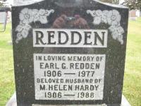Earl George Redden was born on 27 July 1906 at Ontario; Date 1906 per Memorial. Date Jul 27 1906 per family tree of francesdarling_1 on ancestry.com Jul 18 2014.1,2 He married Mary Helen Hardy, daughter of Frederick Alfred Hardy and Harriett Idella "Hattie" Davidson, circa 1940 at Ontario; per family tree of francesdarling_1 on ancestry.com Jul 18 2014.1 Earl George Redden died on 29 August 1977 at Peterborough, Ontario, at age 71; Date 1977 per Memorial. Date Aug 29 1977 & location Peterborough per family tree of francesdarling_1 on ancestry.com Jul 18 2014.1,2 He was buried on 2 September 1977 at Mount Plesant Cemetery, Campbellford, Northumberland Co., Ontario; Memorial: (See Exhibit) REDDEN; In Loving Memory of; Earl G. Redden; 1906 - 1977; Belvoed Husband of; M. Helen Hardy; 1906 - 1988 (Mount Pleasant Cemetery, Campbellford.)2