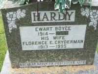 per family tree of francesdarling_1 on ancestry.com Jul 18 2014.1,3 He was buried on 30 March 2015 at Warkworth Cemetery, Warkworth, Northumberland Co., Ontario; Memorial: (See Exhibit) HARDY; Ewart Boyce; 1914 - ; His Wife; Florence E. Cryderman; 1913 - 1995 (Warkworth Cemetery, Warkworth, Jul 12 2009.)4,3
