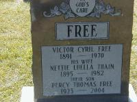Date Sep 30 1912 & location Seymour Twp. per family tree of paula fitzgerald on ancestry.com July 30 2015.1,6 Victor Cyril Free appeared on the census of 4 June 1921 at Balaclava St., Campbellford, Northumberland Co., Ontario; Age 30 at 1921 Census: Free, Victor, 30, b. Ont., p.b. Ont., Irish, Meth., foreman in woollen mill, married; Nettie, 25, b. Ont., p.b. Ont., Scot., Meth., married; Stella, 8, b. Ont., p.b. Ont., Irish, Meth; Jack, 6; Donald, 4; frederick, 2; Lois, 2/12 (1921 Census: Campbellford Town, dist. 107, sub-dist. 53, Ward 4 - Balaclava St. - ancestry.com.)4 He died on 8 January 1970 at Seymour Twp., Northumberland Co., Ontario, at age 78; Date 1970 per Memorial. Date Jan 8 1970 & location Seymour Twp. per family tree of paula fitzgerald on ancestry.com July 30 2015.1,5 He was buried on 11 January 1970 at Mount Pleasant Cemetery, Campbellford, Northumberland Co., Ontario; Memorial: (see Exhibit) FREE; Victor Cyril Free; 1891 - 1970; His Wife; Nettie Luella Thain; 1895 - 1982; Their son; Percy Thomas Free; 1923 - 2004 (Mount Pleasant Cemetery, Campbellford, Aug 11 2006.)5