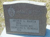 Arthur Alexander Martin was born in 1924; Date 1924 per Memorial. per Obit of sister-in-law Lucie Elizabeth Anne (Flindall) Craig.1 He married Georgena L. Flindall, daughter of Stephen Edward Flindall and Olive Lydia Nix, in 1944 at Ontario; " ... husband of 72 years... " per Obit of Georgena Martin. per Obit of sister Lucie Elizabeth Anne (Flindall) Craig.1 Arthur Alexander Martin Memorial: (See Exhibit) MARTIN; Arthur A. Martin; 1924 - ; His Beloved Wife; Georgena L. Flindall; 1924 - (Mount Hope Cemetery, Apr 2 2006) circa 2015 at Mount Hope Cemetery, Brighton, Northumberland Co., Ontario.2 He died on 12 September 2019 at Ontario; Date Sep 12 2019 & locaiton "at his home" per FindaGrave.3