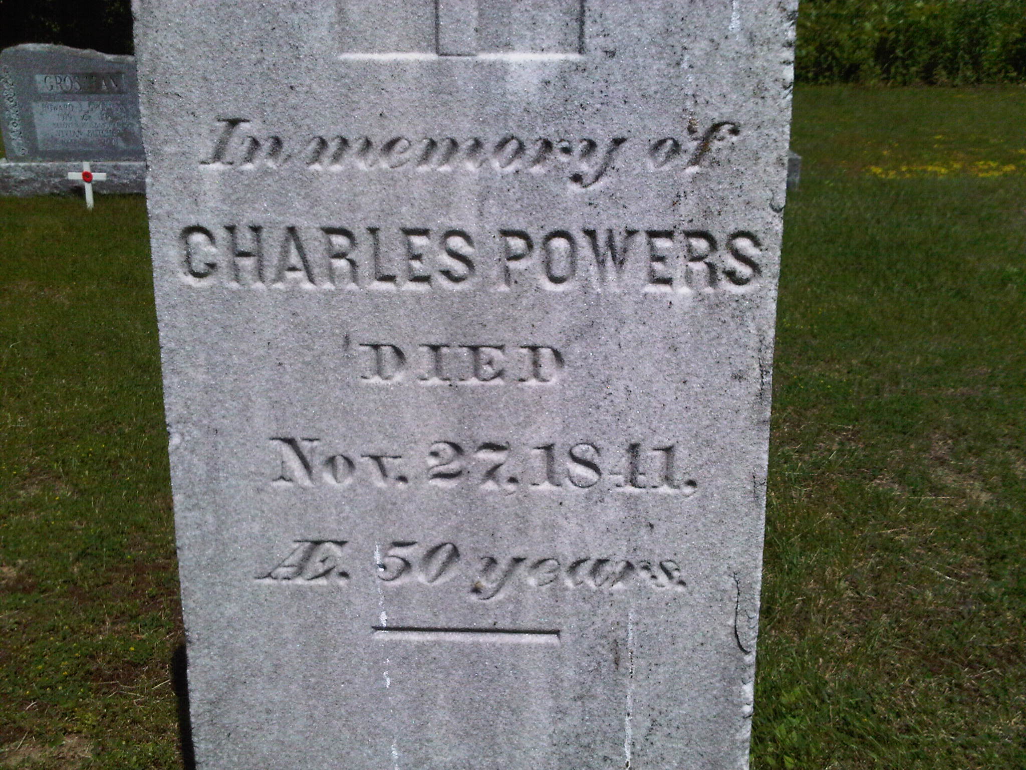 FindaGrave: Name: Charles Powers; BIRTH: 4 Mar 1791, Cavendish, Windsor County, Vermont, USA; DEATH: 27 Nov 1841 (aged 50), Madoc Junction, Hastings County, Ontario, Canada; BURIAL: Fairview Cemetery, Grafton, Northumberland County, Ontario, Canada; MEMORIAL ID: 190444734; Note: Inscription - Charles was killed in a mining explosion at his company in Madoc. (https://www.findagrave.com/memorial/190444734/charles-powers?_gl=1*1gqd6yj*_gcl_au*MTA4ODQwNjUxNC4xNjkwODMyNzkx*_ga*NTYwMjIyMjkyLjE2NzQ5Mzg5MDg.*_ga_4QT8FMEX30*M2QxNzRiNjItNDc5Ny00YjVlLWJjMDgtMmRhZmYwOTZmY2VhLjQ3Ny4xLjE2OTM3NTE0MTMuNTkuMC4w*_ga_QPQNV9XG1B*M2QxNzRiNjItNDc5Ny00YjVlLWJjMDgtMmRhZmYwOTZmY2VhLjguMS4xNjkzNzUxNDEzLjAuMC4w.)3,4