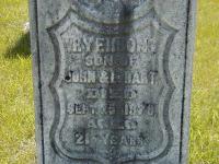 Ryerson "Rison" Hart was born in 1855 at Cramahe Twp., Northumberland Co., Ontario; Date 1855 & location Cramahe per marr. reg'n. Date 1855 & location Cramehe per GEDCOM of Mary (marygirl16@hotmail.com) Sep 17 2017.1,2 He married Mary Ellis, daughter of Benjamin Ellis and Electa Harnden, on 12 July 1878 at Cramahe Twp., Colborne, Northumberland Co., Ontario; Marriage Reg'n.#007394: Groom: Rison Hart; Age: 23; Res.: Haldimand; born: Cramahe; Status; bachelor; Occ.: farmer; Parents: John & Lydia Hart; Bride: Mary Ellis; Age: 19; Res. & Born: Haldimand; Status: spinster; Parents: Benjamin & Electa Ellis; Wit.: Jonathan Gaffield, Haldimand & Mrs. G. W. Stevenson, Colborne; Date: Jul 12 1878; Place: Colborn; Rel.: EM; Performed by: G. W. Stevenson; Reg'r.: a. ?Vayl?, Colborne (Marriage Registration, #007394-1878, ancestry.ca) Date Jul 12 1878 & location Colborne per GEDCOM of Mary (marygirl16@hotmail.com) Sep 17 2017.1,3 Ryerson "Rison" Hart lived on 12 July 1878 at Haldimand Twp., Northumberland Co., Ontario; Residence Haldimand per marr. reg'n.2 He died on 25 September 1879 at Harwood, Northumberland Co., Ontario; per GEDCOM of Mary (marygirl16@hotmail.com) Sep 17 2017.1 He was buried on 30 September 1879 at Castleton Cemetery, Castleton, Northumberland Co., Ontario; Memorial: (See Exhibit) Ryerson; Son of; John & L. Hart; Died; Sep. 25, 1879; Aged; 21 Years (Castleton Cemetery, Castleton, Jun 12 2004.)4