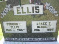 Grace E. Bennett was born in 1916; Date 1916 per Memorial. Per Voter List 1945.1,2 As of before 1945,her married name was Ellis.1 She married Gordon L. Ellis, son of Arthur Ellis and Lillian Gertrude "Lillie" Fitzgerald, before 1945 at Ontario; per Memorial.1,2 Grace E. Bennett lived in 1945 at Castleton, Northumberland Co., Ontario; "116 Ellis, Mrs. Arthur, widow, Castleton" and 117 Ellis, Gordon, soldier, Castleton" & 118 Ellis, Mrs. Gordon, Castleton" & 119 Ellis, Donald, labourer, Castleton" & 120 Ellis, Mrs. Donald, Castleton" (per Canada Voter Lists 1945, Northumberland County, Castleon, Polling Div. No. 40, pg. 86 of 147, ancestry.ca.)1 She lived in 1963 at Castleton, Northumberland Co., Ontario; "96 Ellis, Gordon, labourer, Castleton" & 97 Ellis, Mrs. Gordon, Castleton" "(per Canada Voter Lists 1963, Northumberland County, Castleon, Polling Div. No. 64, pg. 118 of 203, ancestry.ca.)1 She was buried in 1995 at Castleton Cemetery, Castleton, Northumberland Co., Ontario; Memorial: (See Exhibit) ELLIS; Gordon L; Ellis; 1915 - 2007; Grace E; Bennett; 1916 - 1995; Dear Parents of Marilyn and Philip (Castleton Cemetery, July 13 2009.)2 She died in 1995 at Ontario; Date 1995 per Memorial.1