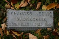 Frances Elizabeth Anne Jervis was born in 1826 at St. George, Hanover Square, England; Date 1826 per Memorial. Date 1826 & location St. George, Hanover Swuare, England per family tree of John Osborne on ancestry.ca, Apr 12 2018.1,2 As of 23 March 1854,her married name was MacKechnie.1 She married Capt. Charles Grant MacKechnie, son of Andrew MacKechnie and Marjory C. Wallace, on 23 March 1854 at Sealkote, Punjab, India; per family tree of John Osborne on ancestry.ca, Apr 12 2018.1 Frances Elizabeth Anne Jervis was buried in 1860 at Mount Hope Cemetery, Brighton, Northumberland Co., Ontario; Memorial: (See Exhibit) Frances Jervis; MacKechnie; Born 1926 - Died 1860 (Mount Hope Cemetery, Brighton, Susan Brose CDs, #4, 817, Oct 20 2005.)2 She died in 1860 at Brighton, Northumberland Co., Canada West; Date 1860 & location Brighton, Ont. per family tree of David Charles MacKechnie, April 15 2018.1