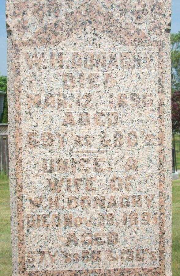 CemSearch: Name: W.H. Donaghy; Born: 1827; Died: Mar 12 1896; Age: 69; ID: LAKEPT026; Other names: Donaghy, Elizabeth (1859-1878), Donaghy, Jerome P. (1856-1871), Donaghy, Jonston D. (1869-1887), Donaghy, Kate E. [McGregor] (1868-1896), Donaghy, Mary A. (1864-1866), Donaghy, Unice A. (1834-1891), Donaghy, W. Bordman (1855-1860); Cemetery: Lakeport Cemetery, Conc B Lot 1, Haldimand Twp., Northumberland Co., Village of Lakeport; Note: Husband of Unice A. (https://www.cemsearch.ca/burial/?pid=LAKEPT026%5E0.)5,6