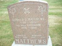 Date Jan 9 1930 & location Colborne per CemSearch. Date Jan 9 1930 & location Toronto per family tree of Ronald Welch on ancestry.ca, Sep 11 2018.1,2,8 He was buried on 12 January 1930 at Lakeport Cemetery, Haldimand Twp., Lakeport, Northumberland Co., Ontario; Memorial: (See Exhibit) Donald C. Matthews; 1859 - 1930; His Wife Catherine; 1859 - 1936; Arnold; 1891 - 1899; Margaret; 1895 - 1896; MATTHEWS (Lakeport Cemetery, Lakeport, Haldimand Twp.)