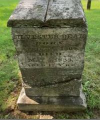 CemSearch: Name: Silvester Dean; Born: Apr 24 1806; Died: May 4 1853; Age: 47; ID: HOPEZN72; No other names: Cemetery: Zion Cemetery, Conc 3, Lot 31, Hope Twp., Northumberland Co., plot 29 (https://www.cemsearch.ca/burial/?pid=HOPEZN72%5E0.)2,3