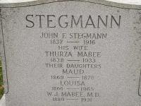 W. J. Mabee Stegman was born in 1880 at Ontario; Date 1880 per Memorial. Date 1880 per family tree of Ellenthorne44 on ancestry.ca, Aug 11 2019.1,2 He was buried in 1931 at Mount Pleasant Cemetery, Toronto, York Co., Ontario; Memorial: (See Exhibit) STEGMANN; John F. Stegmann; 1837-1916; His Wife; Thurza Maybee; 1838-1933; Their Daughters; Maud; 1869-1878; Louisa; 1866-1965; W. J. Mabee, M.D; 1880-1931 (Mount Pleasant Cemetery, Toronto, findagrave, by Islington.)2 He died in 1931; Date 1931 per Memorial. Date 1931 per family tree of Ellenthorne44 on ancestry.ca, Aug 11 2019.1,2