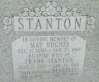 Francis Samuel "Frank" Stanton was born on 11 March 1888 at London, Middlesex Co., England; Date Mar 11 1888 per Memorial. Date Mar 11 1888 & locaiton London, England per FindaGrave. Date Mar 1888 & location England per 1911 Census. Date Mar 11 1887 & location England per 1901 Census. Date 1888 & location England per 1891 Census. Date 1888 & location London, England per marriage reg'n. Date Mar 11 1887 & location London, England per family tree of StephanieKnowles506 on ancestry.ca, Dec 7 2020.1,2,3,6,4,7,5 He appeared on the census of 18 April 1891 at Brighton, Northumberland East Co., Ontario; Age 3 at 1891 Census: see Thomas Stanton.1 He appeared on the census of 4 April 1901 at Brighton, Northumberland East Co., Ontario; Age 13 at 1901 Census: see Thomas Stanton.2 He appeared on the census of 1911 at 117 Montrose Ave., Toronto West, York Co., Ontario; Age 23 at 1911 Census: see Thomas Stanton.3 He lived on 21 June 1913 at Toronto, York Co., Ontario; Witness at marriage of William Henry Stanton & Lottie Winifred Snell.4 He lived on 5 February 1916 at Toronto, York Co., Ontario; Residence Toronto per marr. reg'n.4 He married Florence "May" Hughes, daughter of James Hughes and Rosina Skelly, on 5 February 1916 at Toronto, York Co., Ontario; Marriage Reg'n.#001874: Groom: Francis Samuel Stanton; Age: 27; Res.: Toronto; Born: London, England; Status: bachelor; Occ.: machinist; Rel.: CE; Parents: Thomas Stanton & Nellie Brown; Bride: Florence May Hughes; Age: 24; Res. & Born: Toronto; Status: spinster; Rel.: CE; Parents: James Hughes & Rosina Skelly; Wit.: Maud Hughes & Lyle McHugh, Toronto; Date: Feb 5 1916; Place: Toronto; Performed by: ?? ?Cafferey?, CE, 81 (Ontario Marriage Registrations, #001874-1916, ancestry.ca.)8 Francis Samuel "Frank" Stanton died on 26 January 1976 at East York, York Co., Ontario, at age 87; Date Jan 26 1976 per Memorial. Date Jan 26 1976 & Location East York per FindaGrave. Date Jan 26 1976 & location East York per family tree of StephanieKnowles506 on ancestry.ca, Dec 7 2020.6,5,7 He was buried on 29 January 1976 at Beechwood Cemetery, Vaughan, York Co., Ontario; Memorial: (see Exhibit) STANTON; In Loving Memory of; May Hughes; Dec. 11, 1890 - Jan. 25, 1969; Beloved Wife of; Frank Stanton; Mar. 11, 1888 - Jan. 26, 1976; Their Daughter Beverley; Jan. 5, 1935 - Jan 25, 1979 (Beechwood Cemetery, Vaughan, York Co., image from FindaGrave.)