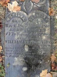 Georgina Linton was born on 13 December 1860 at Alnwick Twp., Northumberland Co., Canada West; Date 1860 & location UC per 1861 Census.1 She appeared on the census of April 1861 at Alnwick Twp., Northumberland Co., Canada West; Age 1 at 1861 Census: see William Linton (Note: Name is clearly written as "Georgina" but recorded as male.??)1 She died on 20 June 1861 at Alnwick Twp., Northumberland Co., Canada West; Date Jun 20 1860 & location Alnwick Twp. per Memorial & CemSedarch & FindaGrave.2,3,4 She was buried on 22 June 1861 at Merrill's Cemetery, Alnwick Twp., Northumberland Co., Canada West; Medmorial: (see Exhibit) Matilda; Died; May 6, 1862; Aged; 4 Y's. 9 Mo's; Georgina; Died; June 20 1860; Aged; 6 Mo's. 7 D's (Merrill's Cemetery, Alnwick Twp., image from CemSearch)