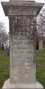 Note: The Memorials for the wife and children show the date of December 27, 1835. He "Tragedy struck shortly thereafter. Two days after Christmas, Corby's wife and three children were enjoying a sleigh ride on the bay. The sleigh broke through the ice and all four drowned. Corby subsequently married the sister of his first wife, a common practice at the time. She eventually bore 12 children before she died and Corby married a third time. Corby later purchased Massassago Point, where his first family had drowned, and turned it into a public resort as a memorial." from "Corby Distilleries Limited History", International Directory of Company Histories, Vol. 14. St. James Press, 1996.
