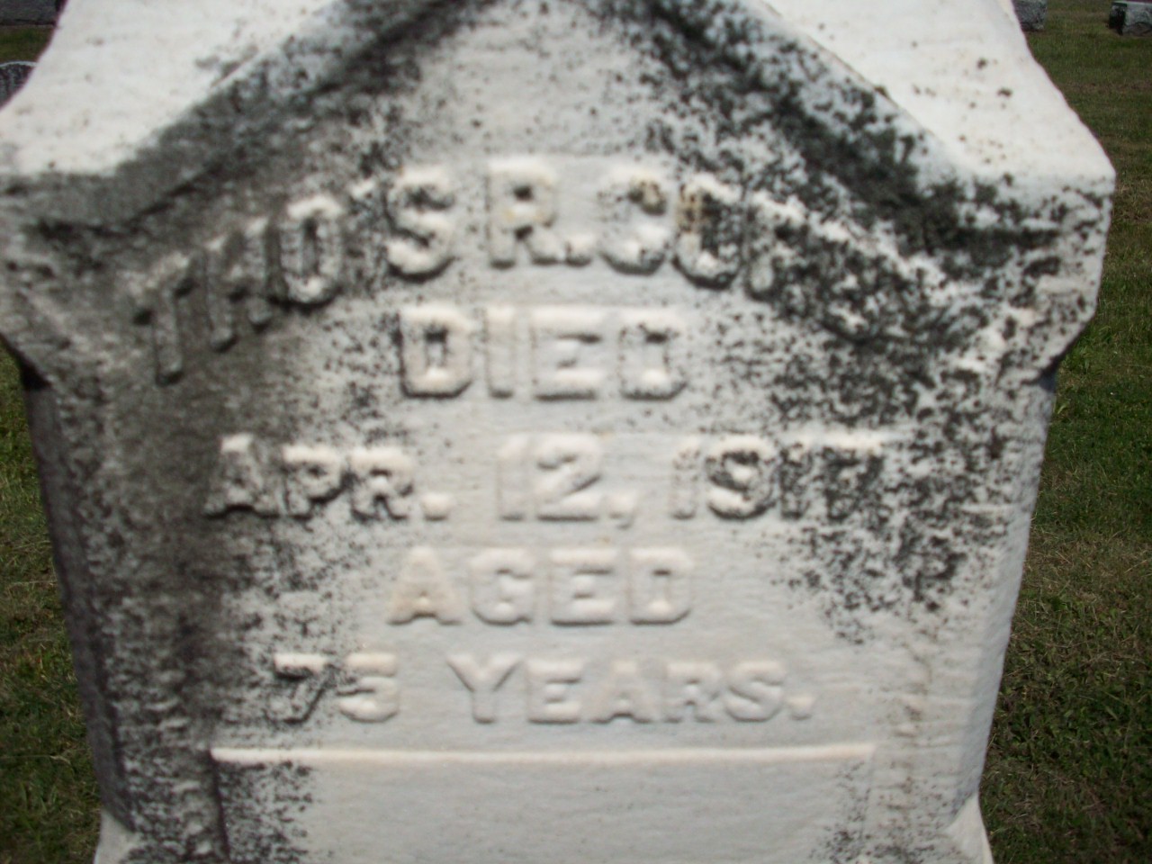 CemSearch: Name: Thomas R. (Jr.) Corby; Born: - ; Died: Apr 12 1917; Age: 75y; ID: MTHOPE219; Other names: Corby, Agnes ( -1889), Corby, Mary A. ( -1889), Corby, Thomas (Sr.) ( -1900); Cemetery: Mount Hope Cemetery, Conc A, Lot 35, Brighton Twp., Village of Brighton, Northumberland Co., Sec 1 Row 11; Note: Husband of Agnes. Son of Thomas (Sr.) and Mary Corby. (https://www.cemsearch.ca/burial/?pid=MTHOPE219%5E2)