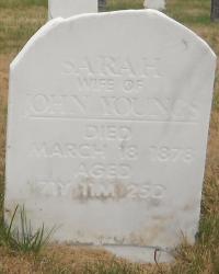 Date March 18, 1878 per Memorial.3,2 She was buried on 25 March 1872 at Consecon Cemetery, Ameliasburgh Twp., Consecon, Prince Edwad Co., Ontario; Memorial: (see Exhibit) Sarah; Wife of; John Youngs; Died; March 18, 1878; Aged; 71y 11m 25d (Consecon Cemetery, Amelaisburgh Twp., Prince Edward Co., image from FindaGrave, Jun 17 2025.)2