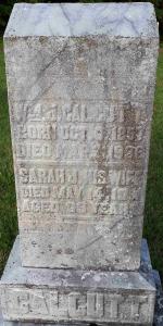 CemSearch: Name: Sarah J. Calcutt; Maiden: Sills; Born: Aug 14 1840; Died: - ; Age: - ID: CARMAN141; Other name: Calcutt, Watson ( -1903); Cemetery: Carman Cemetery, Conc 3, Lot 27, Brighton Twp., Northumberland Co; Note: Wife of Watson Calcutt; Mother of John. Stone repaired 2006. (https://www.cemsearch.ca/burial/?pid=CARMAN141%5E1)