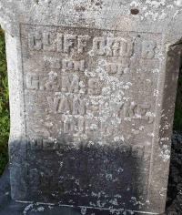 Clifford B. Vanslyke was born on 6 June 1902 at Brighton Twp., Northumberland Co., Ontario; Date Jun 6 1902 per Memorial & CemSearch - age 3y 6m 5d at death Dec 11 1905.1,2 He died on 11 December 1905 at Brighton Twp., Northumberland Co., Ontario, at age 3; Date Dec 11 1905 per Memorial & CemSeaarch.1,2 He was buried on 13 December 1905 at Carman Cemetery, Brighton Twp., Carman, Northumberland Co., Ontario; Memorial: (see Exhibit) Clifford; B; son of; G. & M.S; VanSlyke; Died; Dec 11 1905; Aged; 3 Yrs., 6 M, 5 D. (Carman Cemetery, Brighton Twp., image by Dan Buchanan, Aug 12 2023)