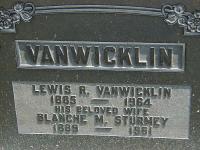 CemSearch: Name: Lewis R. Van Wicklin; Born: 1885; Died: 1964; ID: MTHOPE525; Other names: Sturney, Blanche M. (1889-1961); Cemetery: Mount Hope Cemetery, Conc A, Lot 35, Brighton, Brighton Village, Northumberland Co., Sec 2 Row 3 (https://www.cemsearch.ca/burial/?pid=MTHOPE525%5E0.)2,3