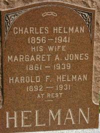 CemSearch: Name: Margaret Ann Jones; Born: 1861; Died: 1939; ID: MTHOPE781; Other names: Helman, Charles (1856-1941), Helman, Harold F. (1892-1931); Cemetery: Mount Hope Cemetery, Conc A, Lot 35, Brightn Twp., Village of Brighton, Northumberland Co., Sec 3 Row 5 (https://www.cemsearch.ca/burial/?pid=MTHOPE781%5E2)